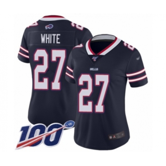 >Women's Buffalo Bills #27 Tre'Davious White Limited Navy Blue Inverted Legend 100th Season Football Jersey
