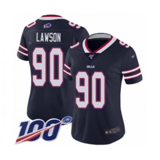 >Women's Buffalo Bills #90 Shaq Lawson Limited Navy Blue Inverted Legend 100th Season Football Jersey