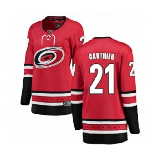 >Women's Carolina Hurricanes #21 Julien Gauthier Authentic Red Home Fanatics Branded Breakaway NHL Jersey