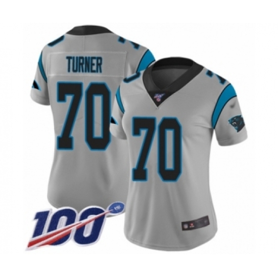 Women's Carolina Panthers #70 Trai Turner Silver Inverted Legend Limited 100th Season Football Jersey