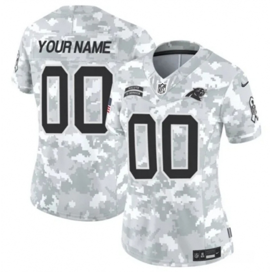 >Women's Carolina Panthers Active Player Custom 2024 F.U.S.E Arctic Camo Salute To Service Limited Stitched Football Jersey(Run Small)