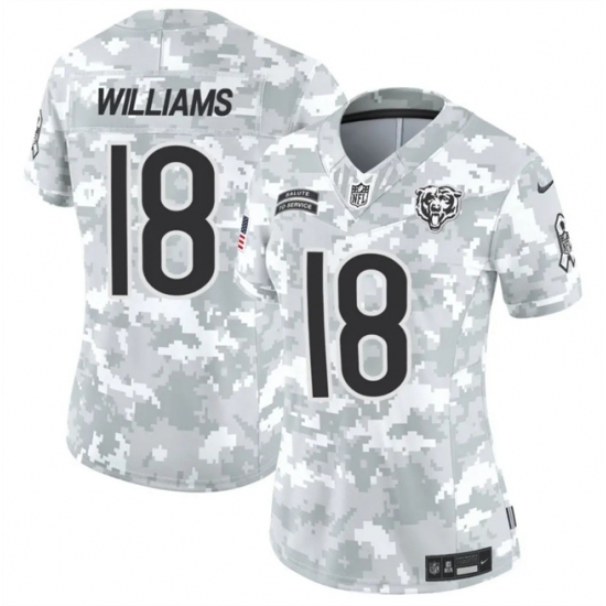 >Women's Chicago Bears #18 Caleb Williams 2024 F.U.S.E Arctic Camo Salute To Service Limited Stitched Football Jersey(Run Small)
