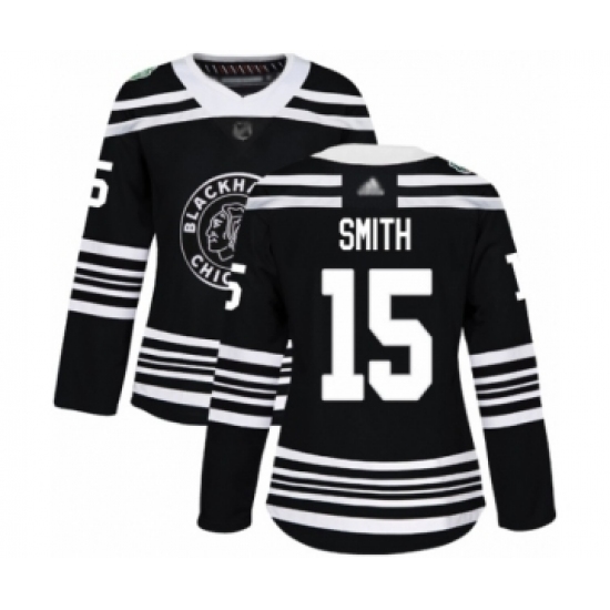 >Women's Chicago Blackhawks #15 Zack Smith Authentic Black 2019 Winter Classic Hockey Jersey