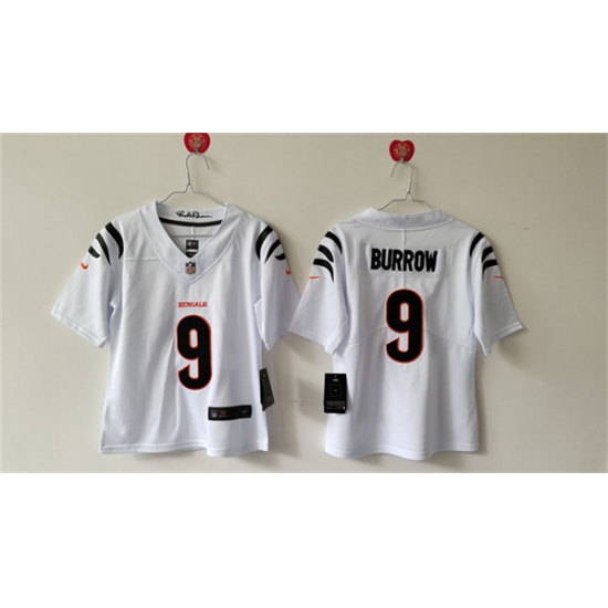 >Women's Cincinnati Bengals #9 Joe Burrow White Vapor Football Stitched Jersey(Run Small)