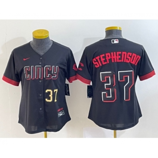 Women's Cincinnati Reds #37 Tyler Stephenson Black 2023 City Connect Cool Base Stitched Jersey1