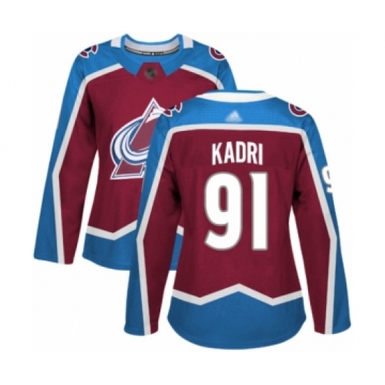 Women's Colorado Avalanche #91 Nazem Kadri Authentic Burgundy Red Home Hockey Jersey