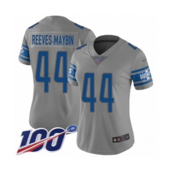 >Women's Detroit Lions #44 Jalen Reeves-Maybin Limited Gray Inverted Legend 100th Season Football Jersey