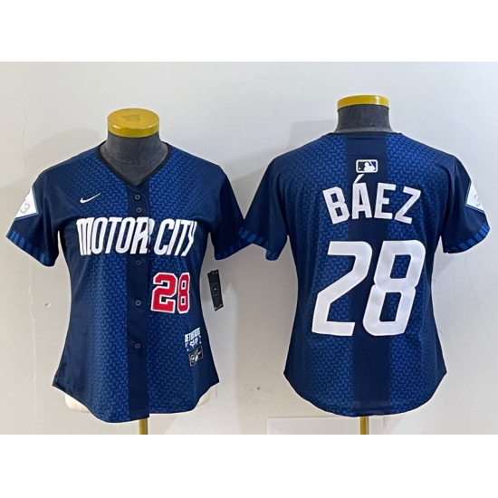 Women's Detroit Tigers #28 Javier Baez 2024 Navy City Connect Cool Base Limited Stitched Jerseys