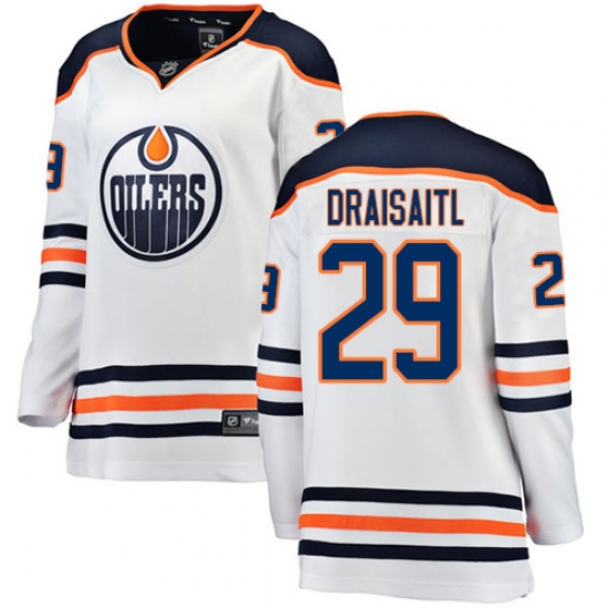 Women's Edmonton Oilers #29 Leon Draisaitl Authentic White Away Fanatics Branded Breakaway NHL Jersey