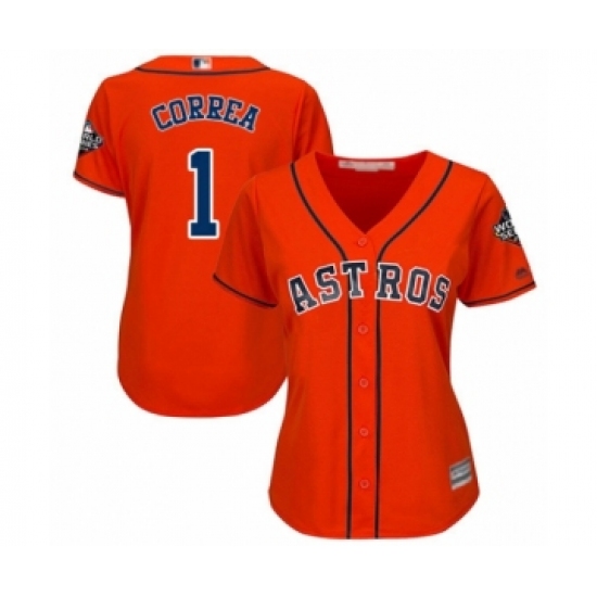 Women's Houston Astros #1 Carlos Correa Authentic Orange Alternate Cool Base 2019 World Series Bound Baseball Jersey