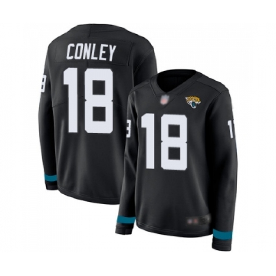 Women's Jacksonville Jaguars #18 Chris Conley Limited Black Therma Long Sleeve Football Jersey