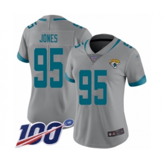 >Women's Jacksonville Jaguars #95 Abry Jones Silver Inverted Legend Limited 100th Season Football Jersey