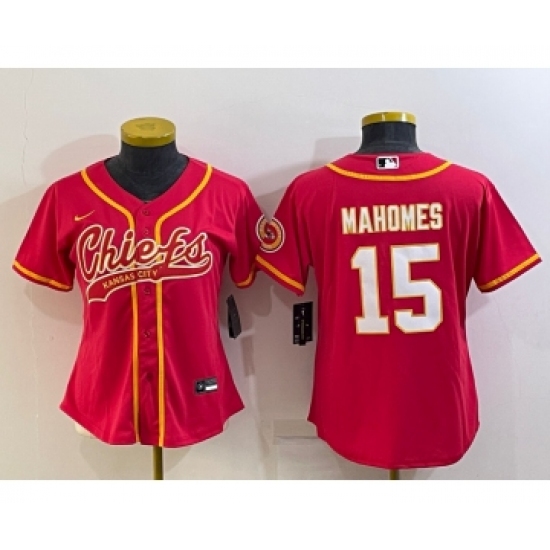 Women's Kansas City Chiefs #15 Patrick Mahomes Red With Patch Cool Base Stitched Baseball Jersey
