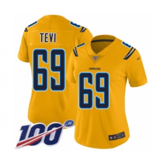 >Women's Los Angeles Chargers #69 Sam Tevi Limited Gold Inverted Legend 100th Season Football Jersey