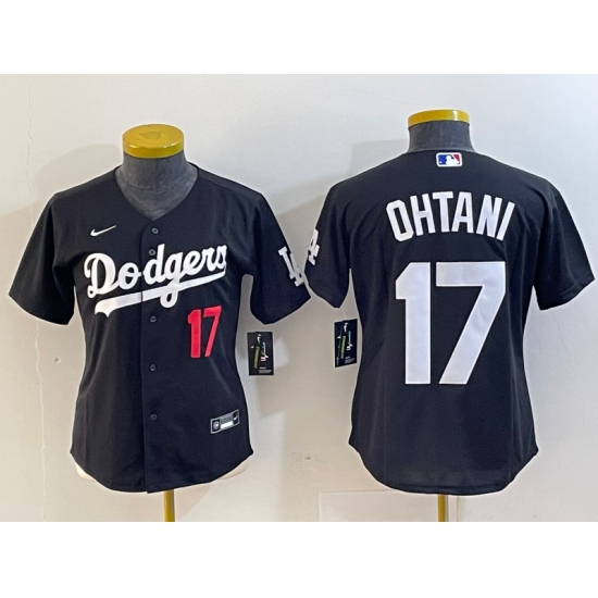 >Women's Los Angeles Dodgers #17 Shohei Ohtani Number Black Turn Back The Clock Stitched Cool Base Jerseys