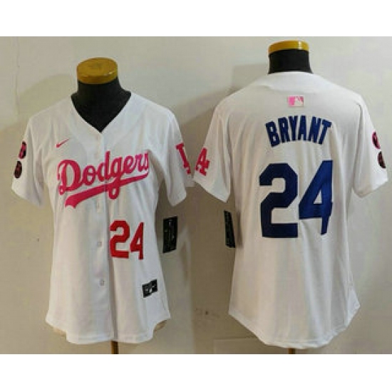 Women's Los Angeles Dodgers #24 Kobe Bryant Number White Pink With Limited Stitched Jersey