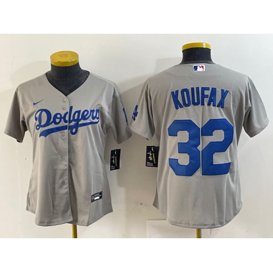 >Women's Los Angeles Dodgers #32 Sandy Koufax Grey Cool Base Stitched Jersey
