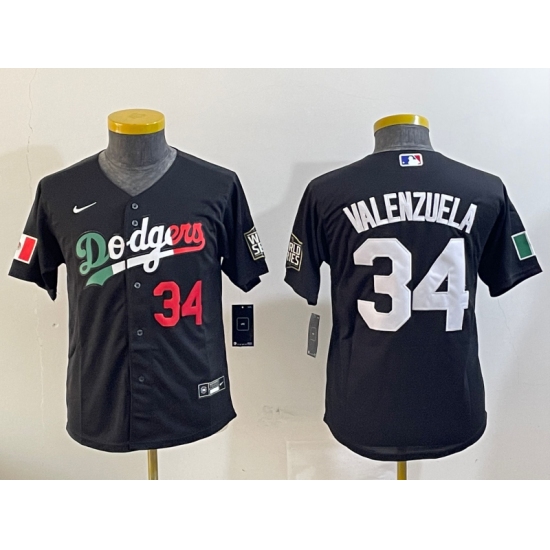 Men's Los Angeles Dodgers #34 Fernando Valenzuela Mexico Black Cool Base Stitched Baseball Jersey