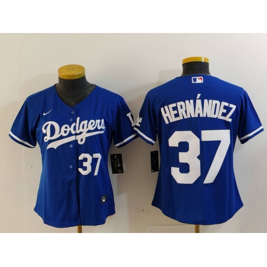 Women's Los Angeles Dodgers #37 Teoscar Hernandez Number Blue Cool Base Stitched Jerseys