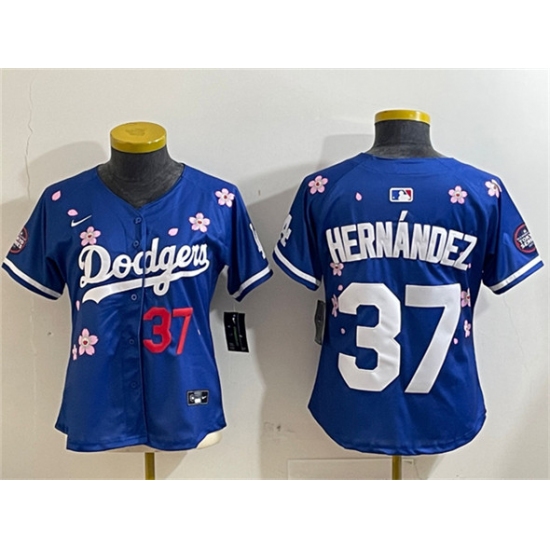 >Women's Los Angeles Dodgers #37 Teoscar Hernández Royal 2025 Tokyo Series Limited Stitched Baseball Jersey(Run Small)