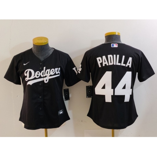 >Women's Los Angeles Dodgers #44 Vicente Padilla Black Cool Base Stitched Jersey