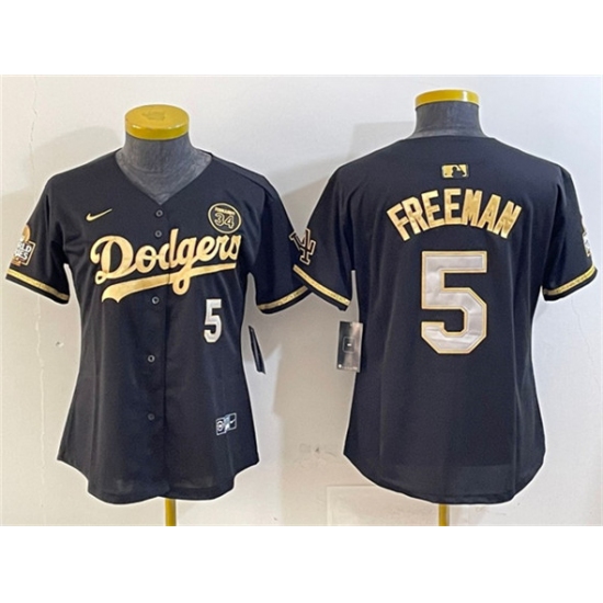 Women's Los Men's Los Angeles Dodgers #5 Freddie Freeman Black Gold 2024 World Series 34 Stitched Cool Base Jerseys
