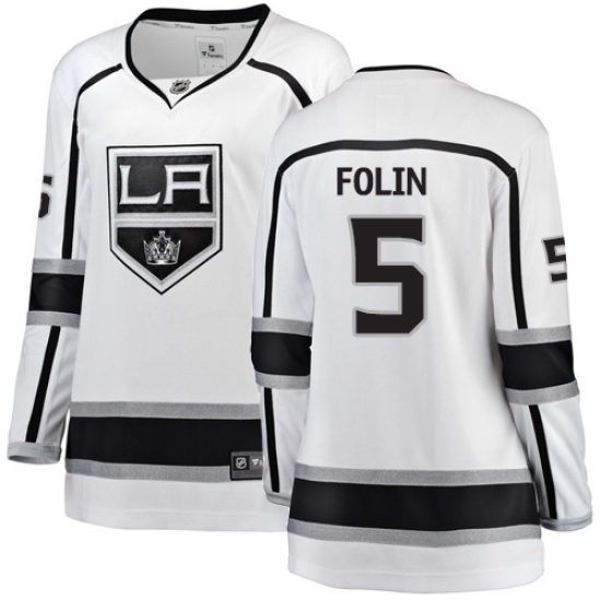Home>NHL>Los Angeles Kings>Christian Folin>Women's Los Angeles Kings #5 Christian Folin Authentic White Away Fanatics Branded Breakaway NHL Jersey