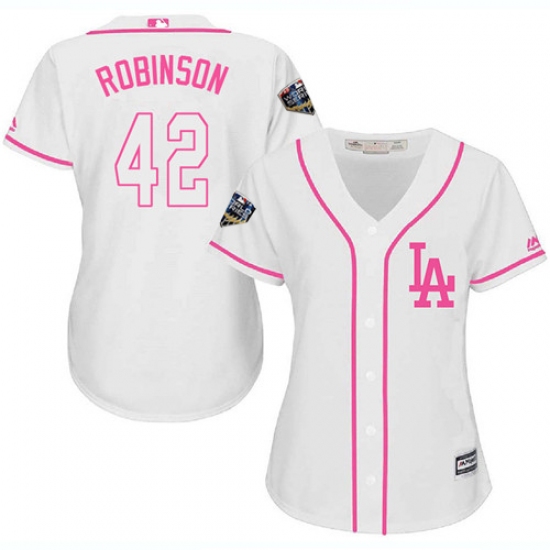 Women's Majestic Los Angeles Dodgers #42 Jackie Robinson Authentic White Fashion Cool Base 2018 World Series MLB Jersey