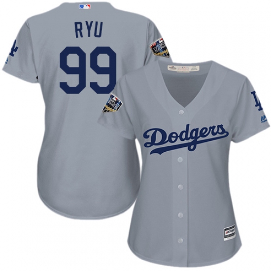 Women's Majestic Los Angeles Dodgers #99 Hyun-Jin Ryu Authentic Grey Road Cool Base 2018 World Series MLB Jersey