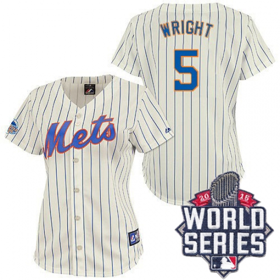 Home>MLB>New York Mets>David Wright>Women's Majestic New York Mets #5 David Wright Replica Cream/Blue Strip 2015 World Series MLB Jersey