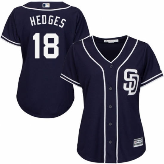 Women's Majestic San Diego Padres #18 Austin Hedges Replica Navy Blue Alternate 1 Cool Base MLB Jersey