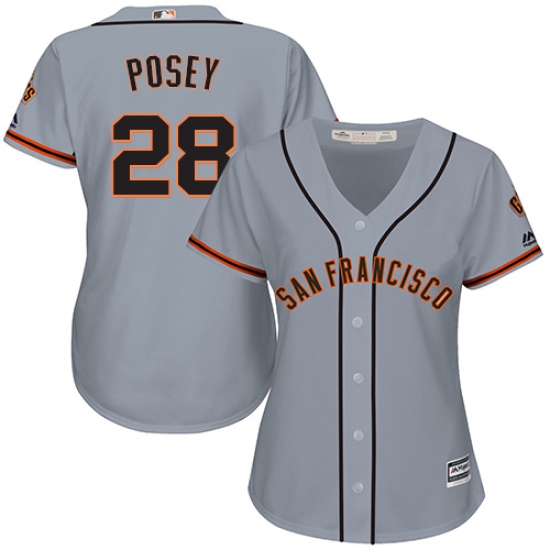 Women's Majestic San Francisco Giants #28 Buster Posey Replica Grey Road Cool Base MLB Jersey