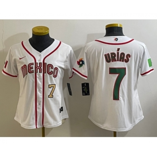 Women's Mexico Baseball #7 Julio Urias Number 2023 White World Classic Stitched Jersey3