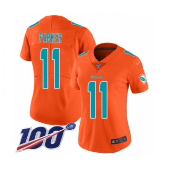 Women's Miami Dolphins #11 DeVante Parker Limited Orange Inverted Legend 100th Season Football Jersey