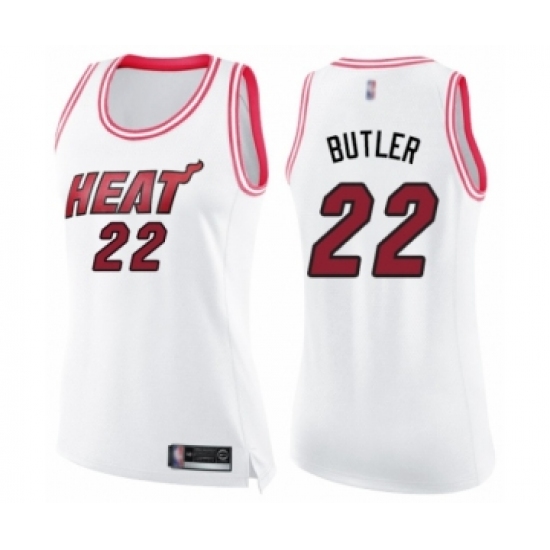 Women's Miami Heat #22 Jimmy Butler Swingman White Pink Fashion Basketball Jersey