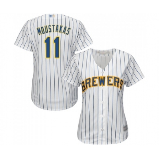 Women's Milwaukee Brewers #11 Mike Moustakas Replica White Home Cool Base Baseball Jersey