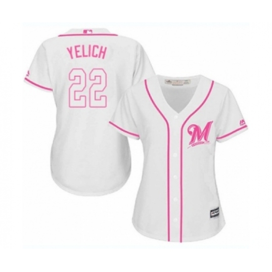 Women's Milwaukee Brewers #22 Christian Yelich Authentic White Fashion Cool Base Baseball Player Jersey