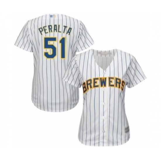 Women's Milwaukee Brewers #51 Freddy Peralta Authentic White Alternate Cool Base Baseball Player Jersey