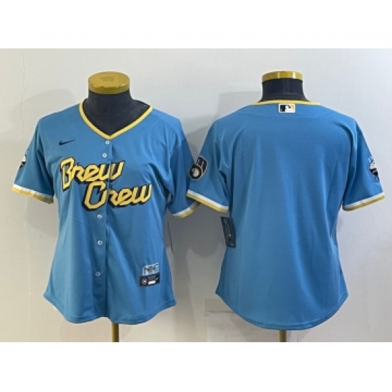 Women's Milwaukee Brewers Blank Blue 2022 City Connect Cool Base Stitched Jersey