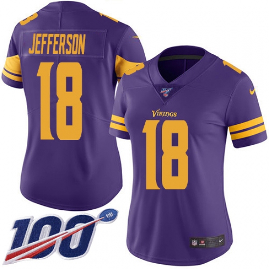 Women's Minnesota Vikings #18 Justin Jefferson Purple Stitched NFL Limited Rush 100th Season Jersey