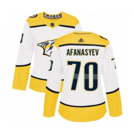 >Women's Nashville Predators #70 Egor Afanasyev Authentic White Away Hockey Jersey