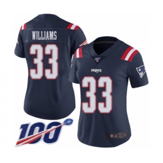 >Women's New England Patriots #33 Joejuan Williams Limited Navy Blue Rush Vapor Untouchable 100th Season Football Jersey