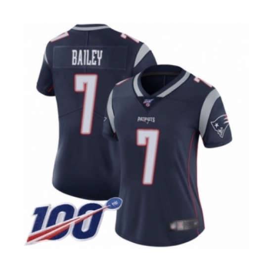 >Women's New England Patriots #7 Jake Bailey Navy Blue Team Color Vapor Untouchable Limited Player 100th Season Football Jersey