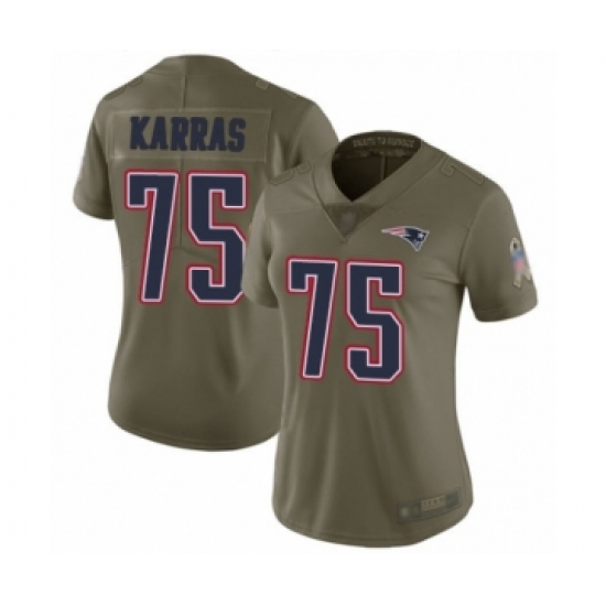 >Women's New England Patriots #75 Ted Karras Limited Olive 2017 Salute to Service Football Jersey