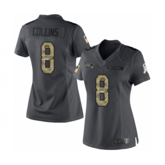 Women's New England Patriots #8 Jamie Collins Limited Black 2016 Salute to Service Football Jersey