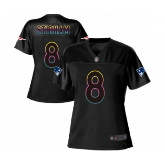>Women's New England Patriots #8 Jarrett Stidham Game Black Fashion Football Jersey