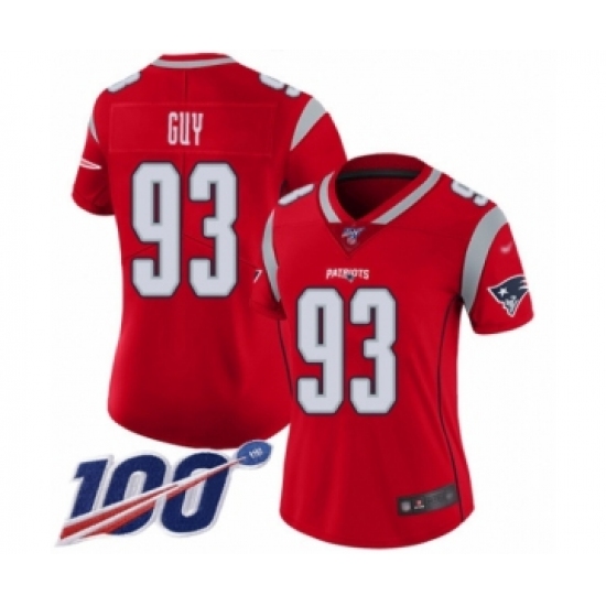 >Women's New England Patriots #93 Lawrence Guy Limited Red Inverted Legend 100th Season Football Jersey