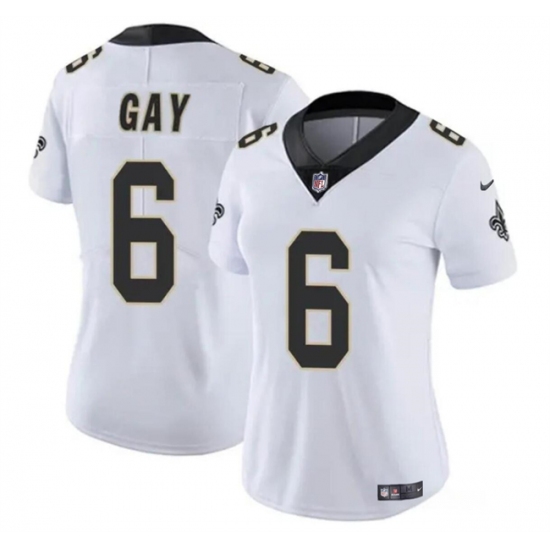 Women's New Orleans Saints #6 Willie Gay White Vapor Football Stitched Game Jersey(Run Small)