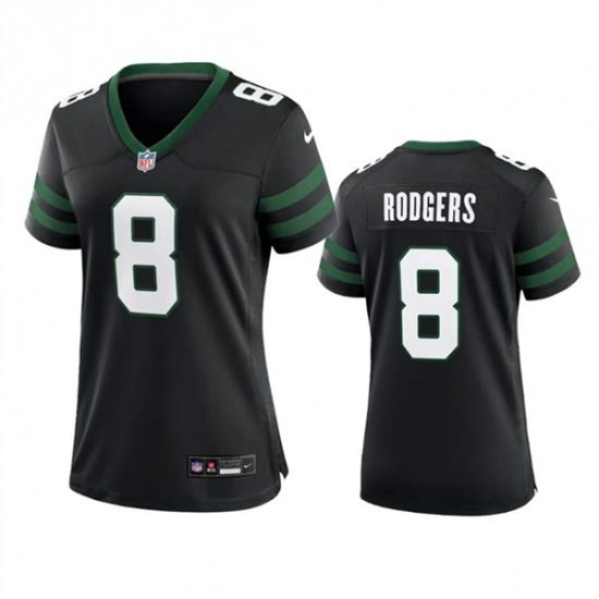 Women's New York Jets #8 Aaron Rodgers Black 2024 Football Stitched Jersey(Run Small)