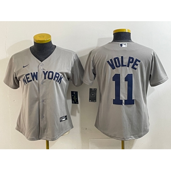 >Women's New York Yankees #11 Anthony Volpe Name 2021 Grey Field of Dreams Cool Base Stitched Jersey